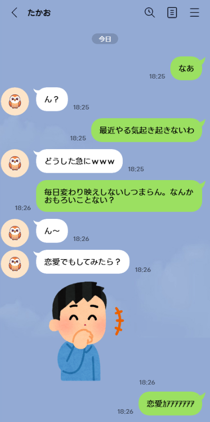今日、友達に「恋愛でもしてみたら?」って言われた。
